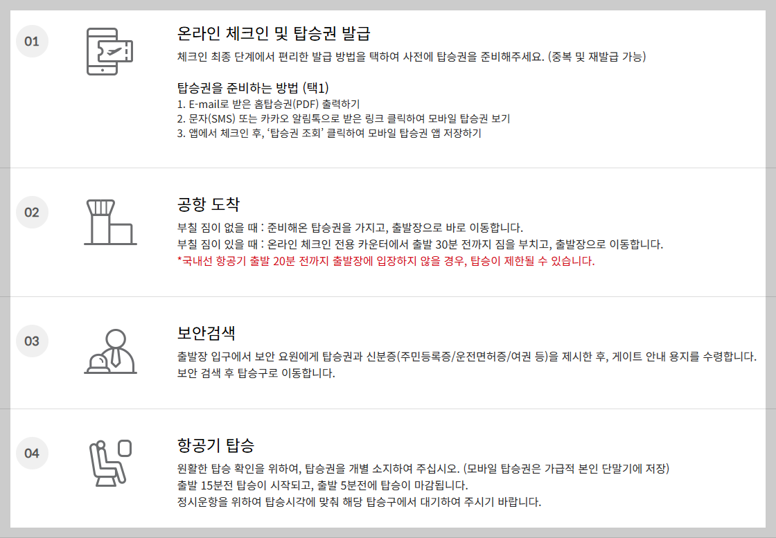 1) 온라인 체크인 및 탑승권 발급