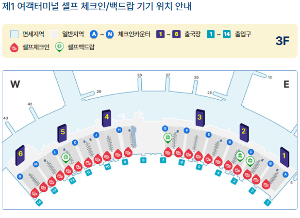 | 대한항공 | F 카운터 05:30~20:00 (항공기 출발 1시간 전까지) | E 카운터에서 수속 진행 (이용제한 승객 대한항공 홈페이지 참고) |