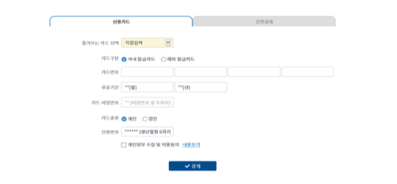 4. 신용카드 결제 혹은 간편 결제를 선택한 후 금액을 결제한다.