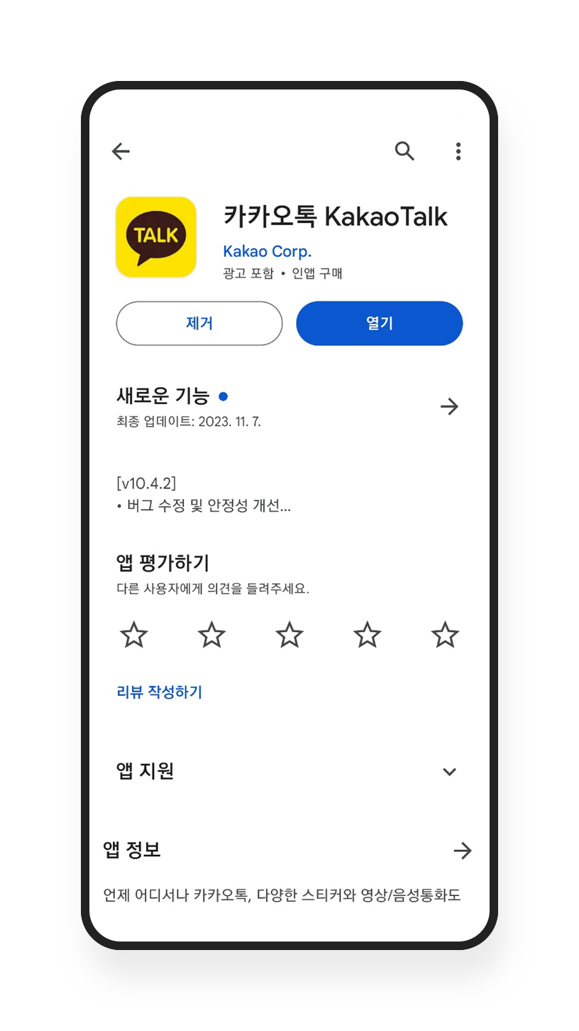 현재 사용 중인 카카오톡 버전 정보 및 최신 버전 이용여부 확인하는 방법은 '설정 > 앱관리'에서 확인할 수 있으니 꼭 확인해 보세요.