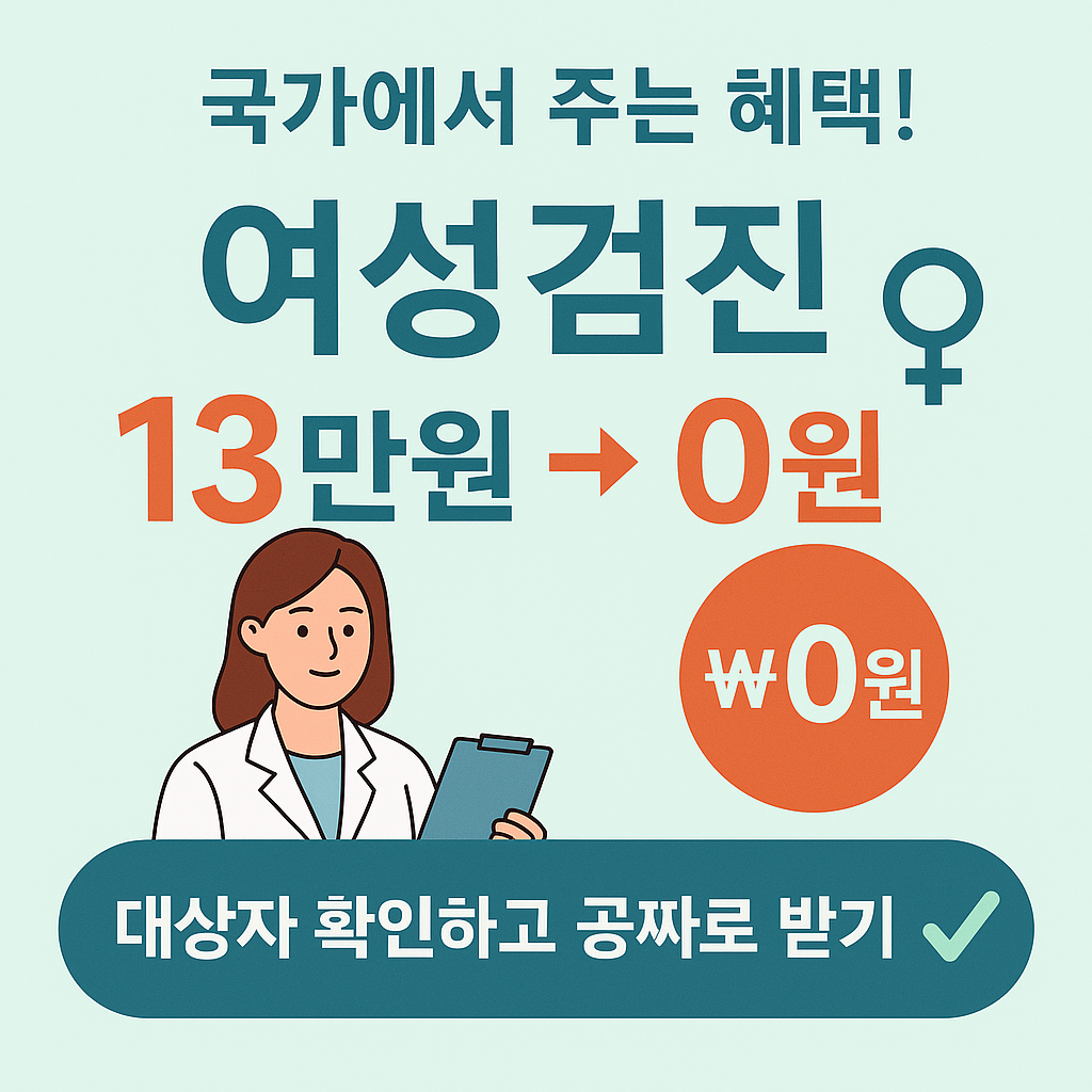 2025년에도 여전히 많은 분들이 국가에서 제공하는 무료 여성검진을 모르고 지나칩니다. 해당 검진은 병원에서 자비로 받으면 약 13만 원 정도의 비용이 발생하지만, 건강보험공단에서 13만 원 전액 지원하기 때문에 대상자라면 누구나 무료로 받을 수 있습니다.
