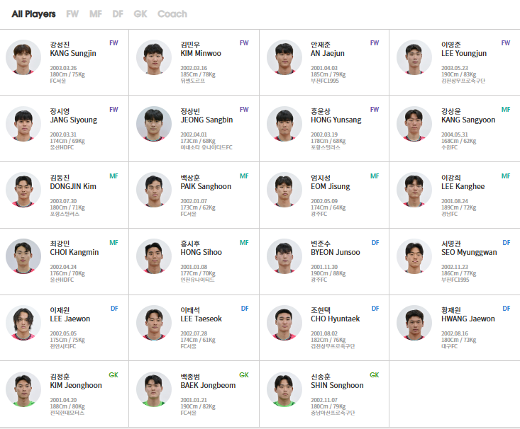 FW: 강성진, 김민우, 안재준, 이영준, 장시영, 정상빈, 홍윤상